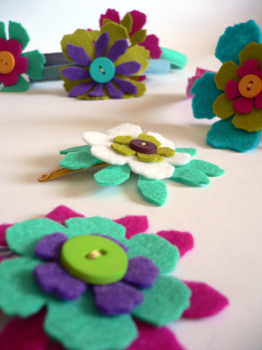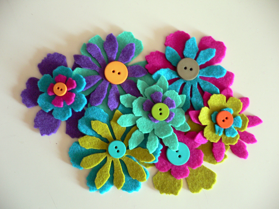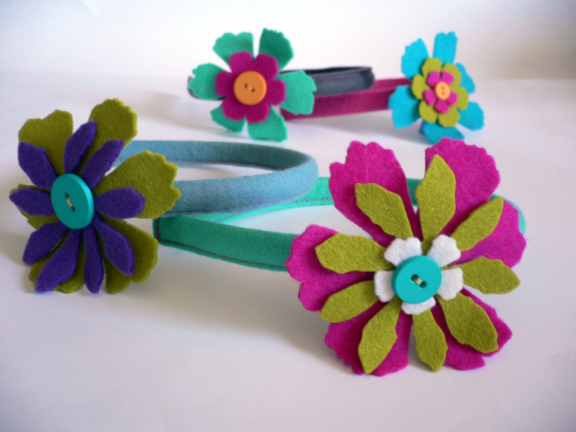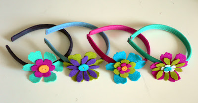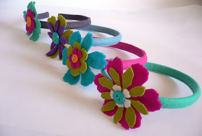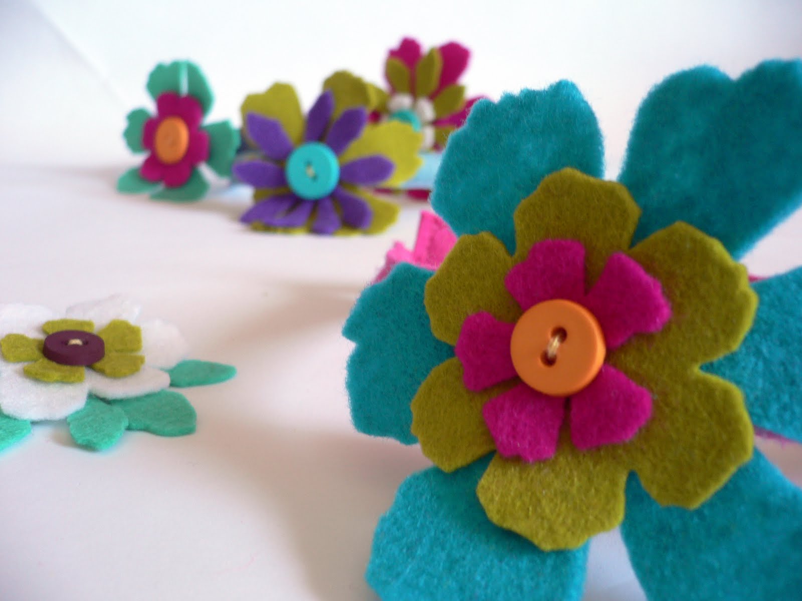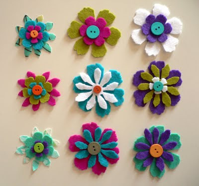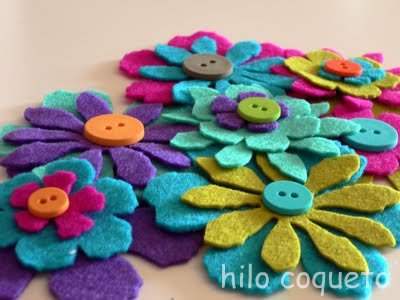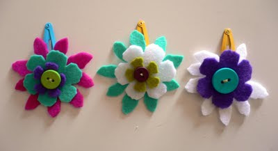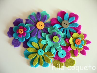 Finally, I can post entries after some technical glitches with Blogger, I wasn´t allowed to post or to save my entries, If someone is having the same problem, you should know that I´ve fixed it using Google Chrome, instead of Internet Explorer. These flowers are cut with my sister´s Big Shot cutter, wich cuts off any kind of material: cardboard, fabric, foam, felt ...anything you want, the truth is that it is amazing how fast you can work. She uses it for her cards and scrapbooking albums, and the other day I took my kids to her house and we had a great time making cards and felt flowers. And this is the result. I want one for myself !!!!!